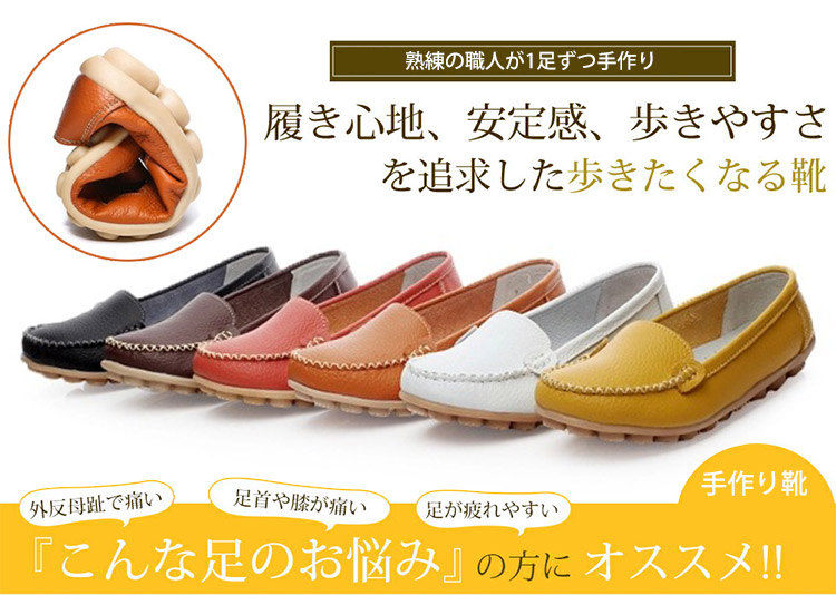 【カジュアルシューズ】牛革 コンフォート フラットシューズ 手作り ゴム粒