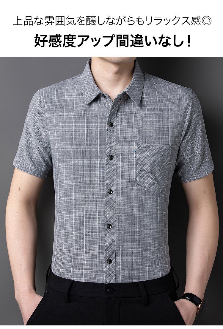 【チェック柄綿麻メンズシャツ】綿麻は快適で通気性が良く、便利さと快適さのベストチョイス
