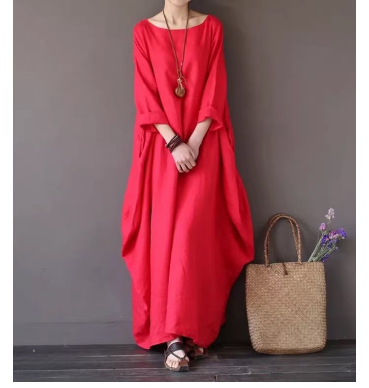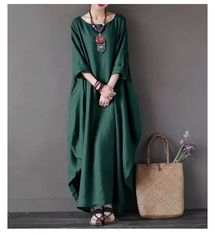 綿麻ルーズロングワンピース