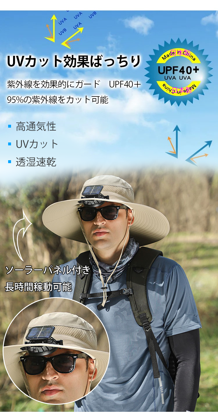 ソーラー扇風機付きUVカット帽子