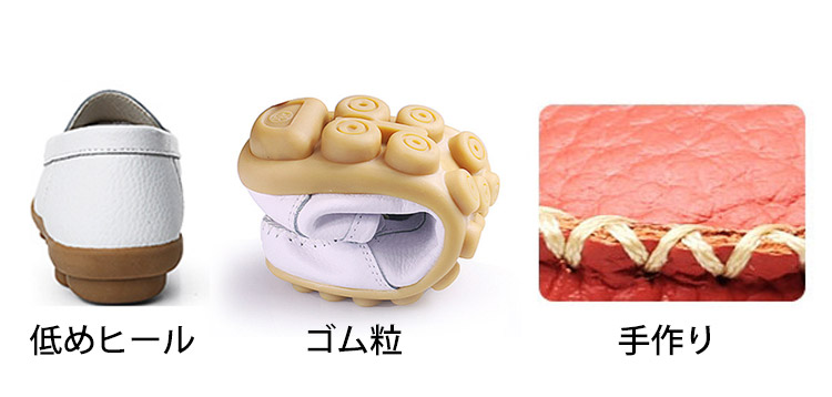 【カジュアルシューズ】牛革 コンフォート フラットシューズ 手作り ゴム粒