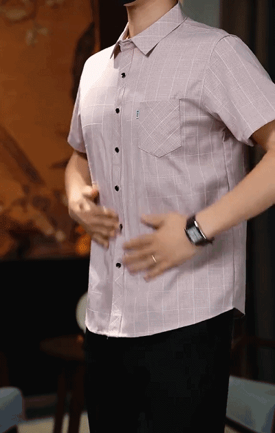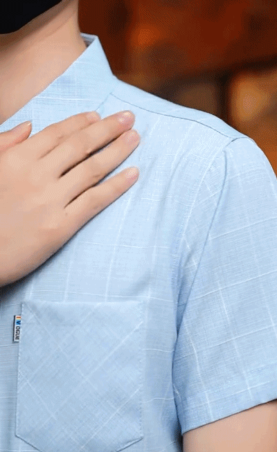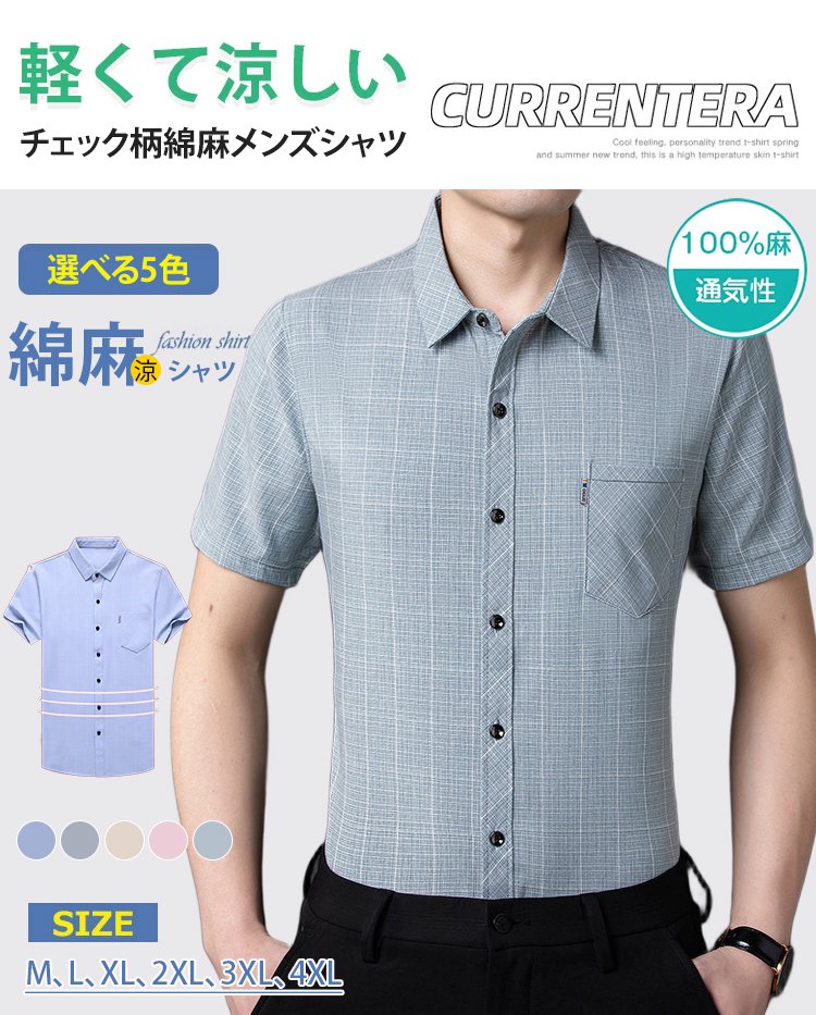 【チェック柄綿麻メンズシャツ】綿麻は快適で通気性が良く、便利さと快適さのベストチョイス