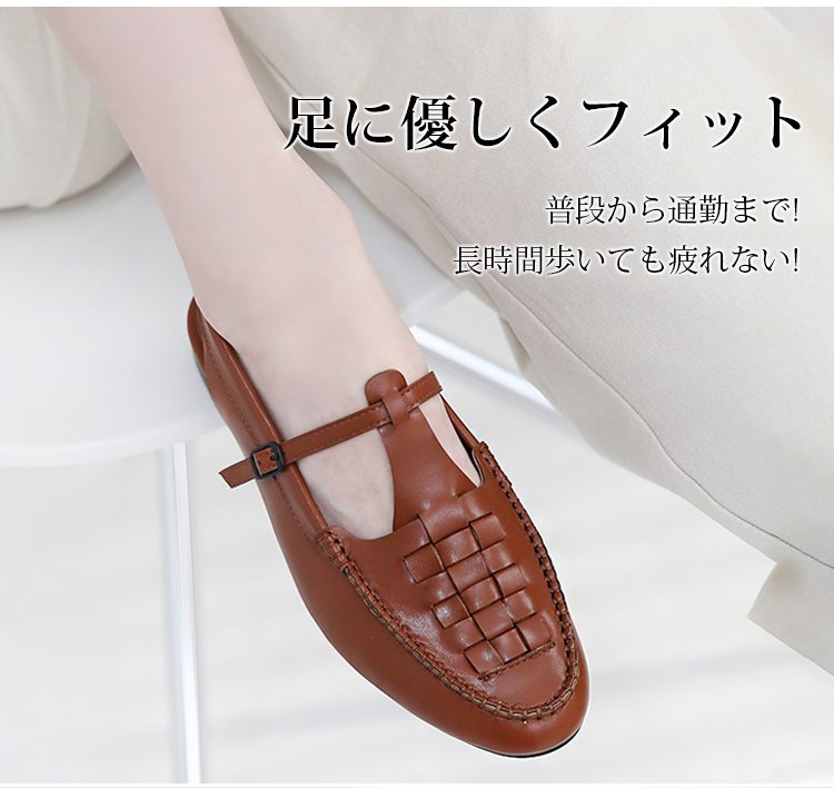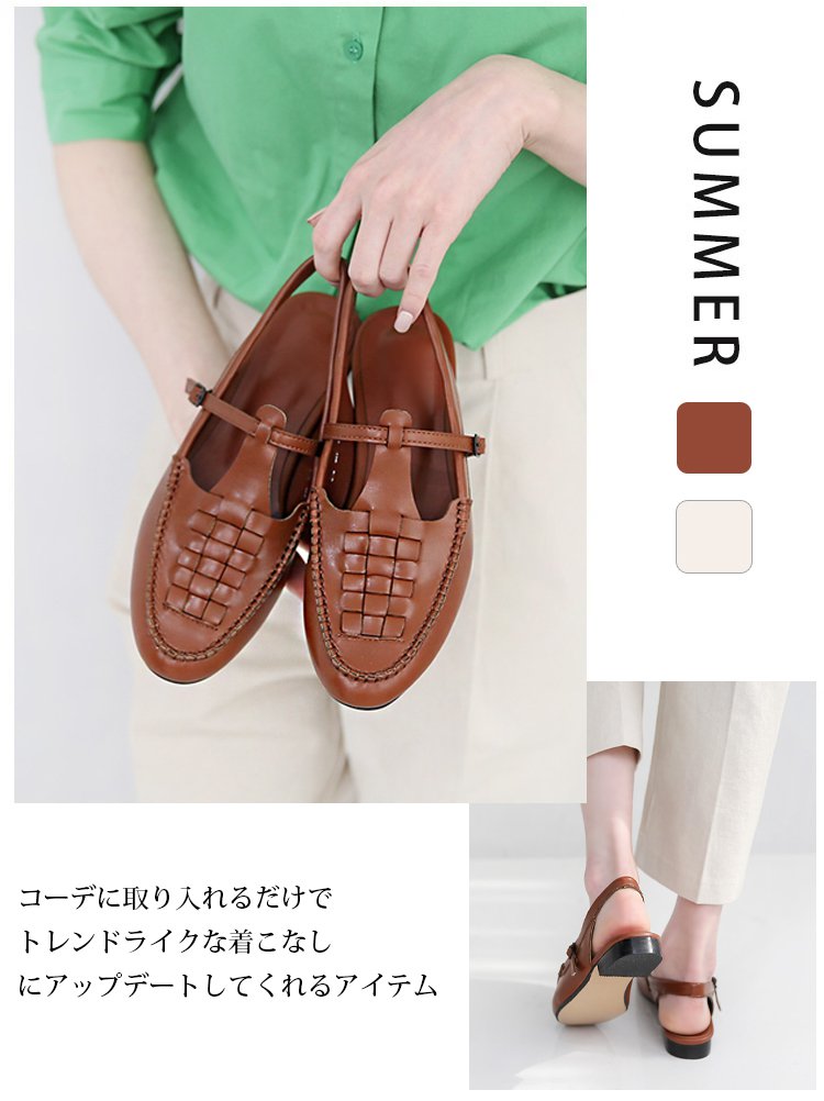 天然素材を使用した手編みサンダルで、通気性抜群。一日中履いても蒸れず、快適な履き心地を実現。夏の散歩もおしゃれに楽しめます。