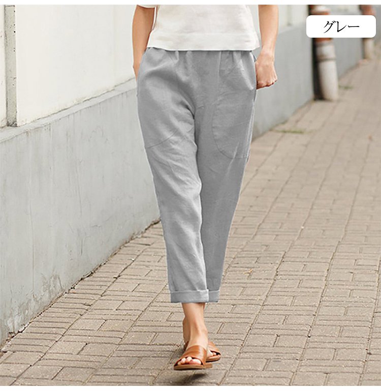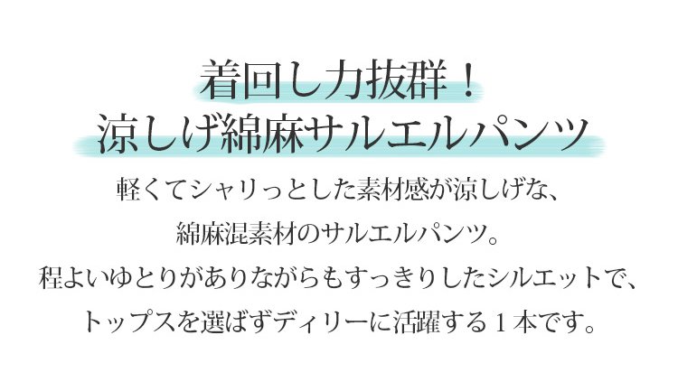 九分丈綿麻サルエルパンツ