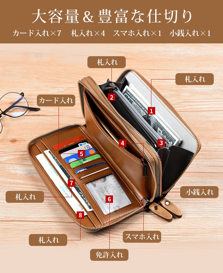 【メンズダブルファスナー長財布】上品なレザーが大人の男を演出。ビジネスもプライベートも格上げ!