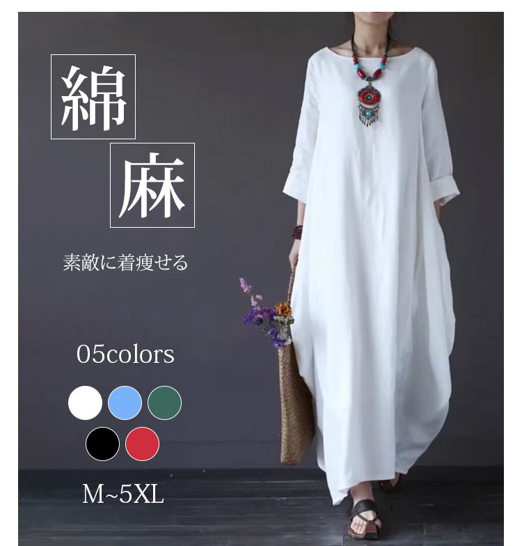 綿麻ルーズロングワンピース