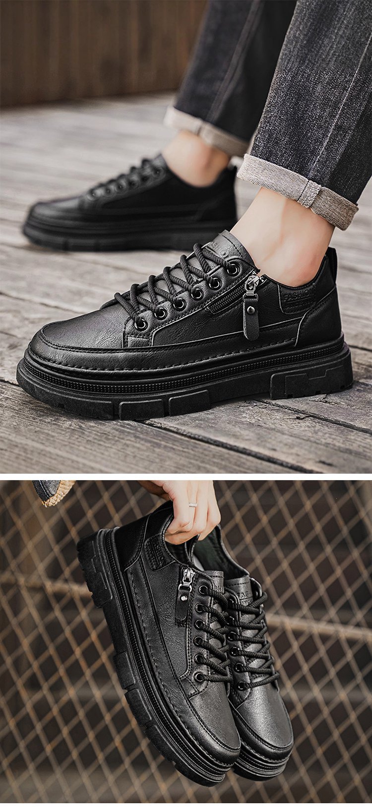 紐なしメンズショートブーツ