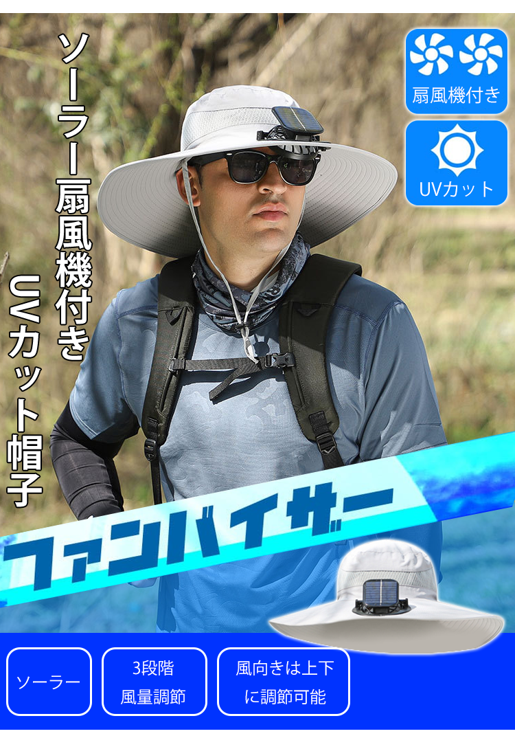 ソーラー扇風機付きUVカット帽子